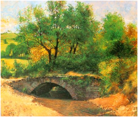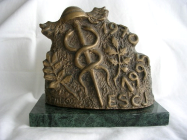 ... Sus lienzos se hallan impregnados de poesía y en una armonía plena. Su temática es extensa, destacando los cuadros costumbristas, en los que la simbiosis hombre-tierra se halla en su máxima expresión, como en el lienzo “Fiesta Mayor en Deva” que fue seleccionado para el Salón de Otoño de París, en 1985. En su obra, el hombre cumple su misión o destino, encontrándose emplazado dentro de un conjunto abigarrado, y con rasgos caricaturescos, sin más empastes de los que son menester para su delimitación. Si la ciencia persigue la verdad, el arte persigue la belleza: sin ambas, la vida no se concibe, y tan interesante es la una como la otra. Pues bien, la obra de Gallego conjuga ambas características. Dr. J.C. Galán Cortés Sociedad Española de Médicos Escritores Madrid 1987 |