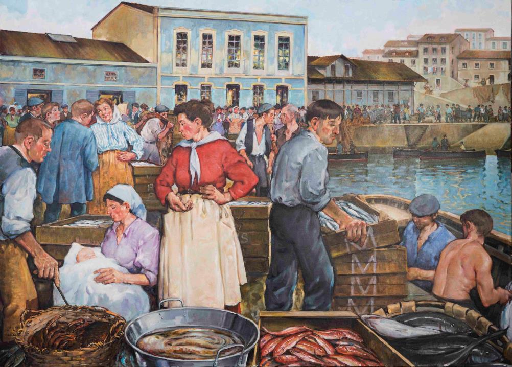 Jesús Miguel GALLEGO, a quien yo he visto nacer artísticamente, muestra desde los primeros acrílicos, llenos de desenfado juvenil, que plasmaba en el primer soporte que caía en sus manos, pasando por sus acuarelas, ingenuas, llenas de ternura, un profundo interés, amor y preocupación por la figura humana, contemplada en las mil y una facetas de sus quehaceres de supervivencia y convivencia. Su personalidad artística se ha ido matizando, definiendo, configurando y acrisolando. Nunca fue llamado por la vía de las aventuras del color por el color o el abstractismo, aunque quizá sería más correcto decir que recorrió ese canino por la «vía crucis» de la experiencia de un muchacho que siente la necesidad de probarse a sí mismo y, debo decir1o ya, que lo hizo con fortuna, fortuna de la que puedo dar fe, pues soy de los pocos que tienen obra suya de aquellos tiempos primigenios. GALLEGO pinta figuras sin apellidos, pero con nombre, y ese nombre es pueblo, pueblo en el sentido más lato de la palabra, con mayúsculas, dicho sin menosprecio y sí con amor. Pescadores, gentes de la Rula, gentes de la calle -si se quiere anónimos- pero profundamente singularizadores de nuestro vivir de cada día. GALLEGO manifiesta una envidiable madurez, madurez en la que destaca el aire de murales clásicos de sus obras, casi composiciones escultóricas por la singular armonización del diálogo coherente, del dibujo, el color y la composición, que les dan una extraordinaria profundidad y un hondo dramatismo. Pero yo estoy seguro de que estamos ante una primavera espléndida que augura un verano pródigo y exuberante, y que ese alma sin fronteras que esconde en lo profundo de su acendrada asturianía nos reserva sorpresas enjundiosas.
